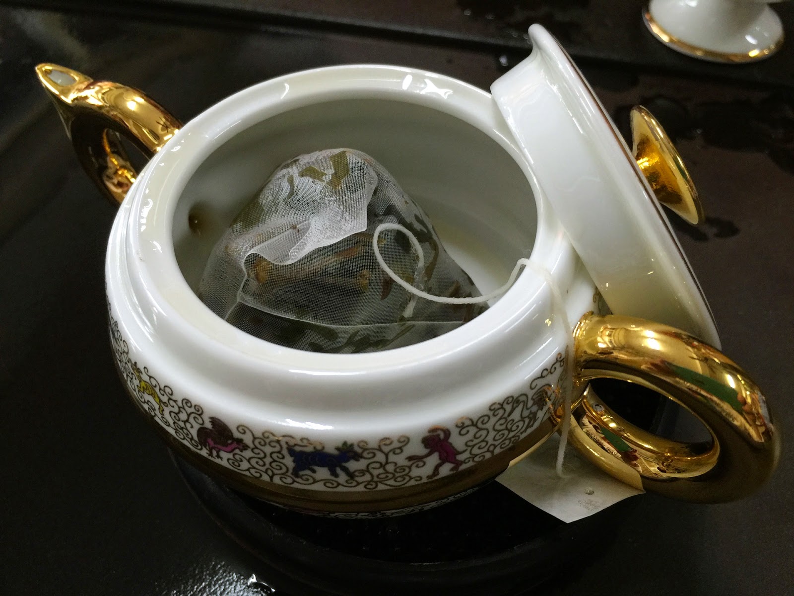 | 這種茶顏色深一點,但還是金黃色來的,添在這豆茶器的杯子裡,整體顯得格外高貴,但在下服裝儀容不整就不露臉了。 |